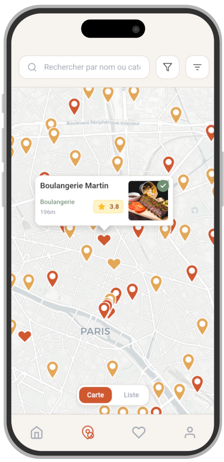 La liste des restaurants, cafés et boulangeries autour de vous, avec accès direct à leurs réseaux.